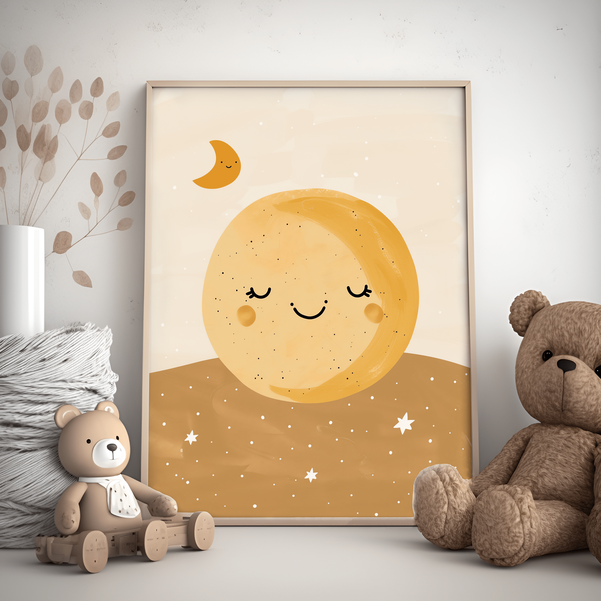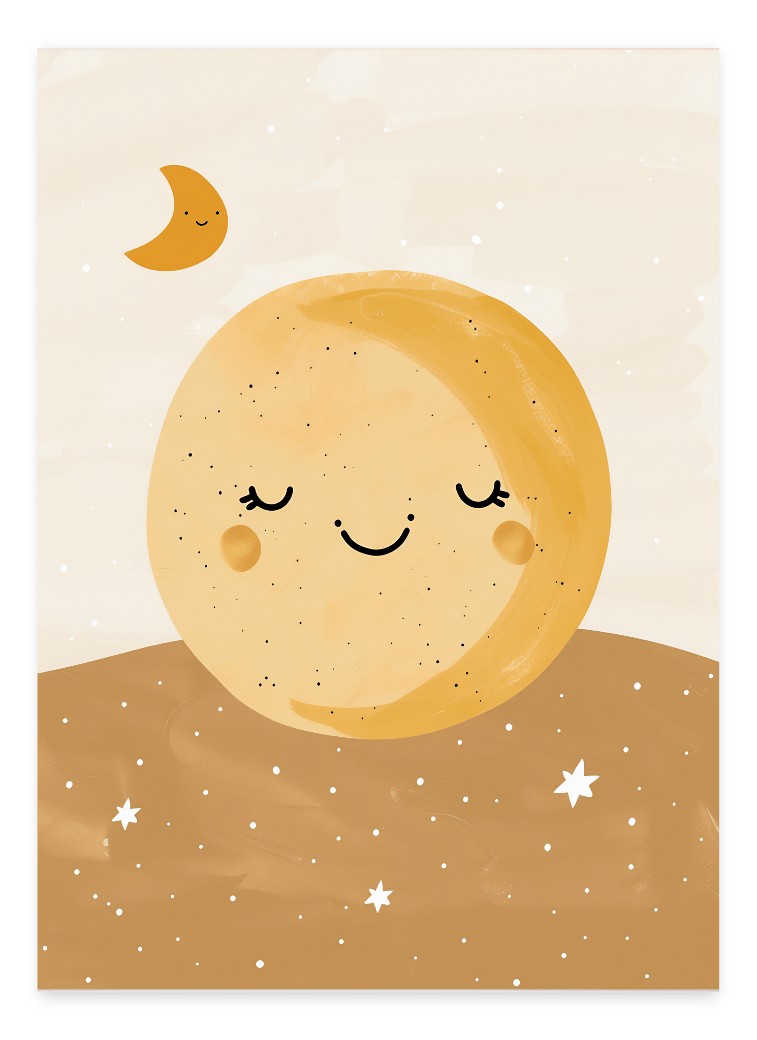 Bestil din børneplakat i dag og lad en glad måne lyse op i dit barns drømme!