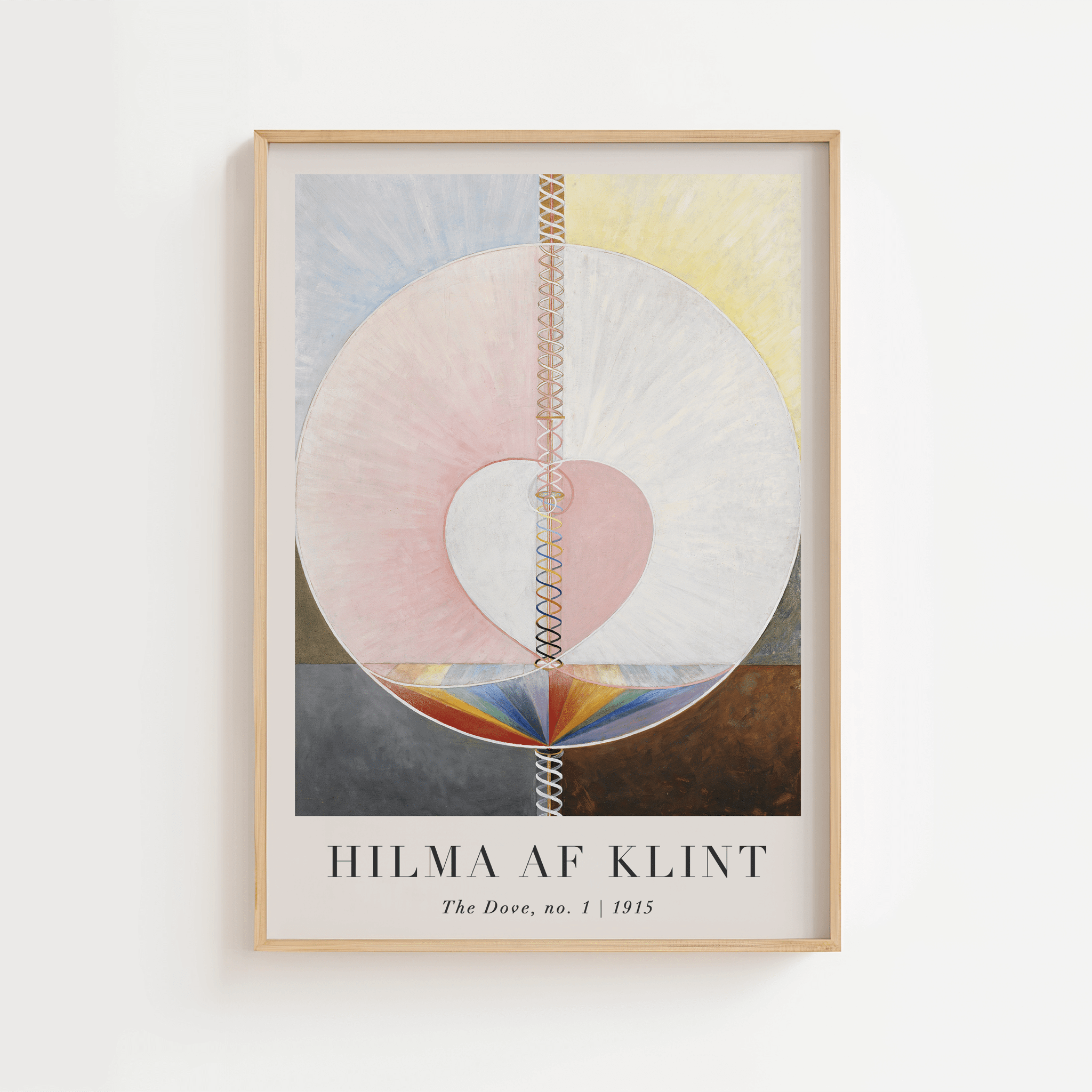 The Dove af Hilma af Klint er et fascinerende kunstværk, der kombinerer spirituel symbolik med abstrakt æstetik. Som en del af hendes visionære serie udforsker denne plakat temaer som balance, transformation og indre erkendelse gennem geometriske former og harmoniske farver.