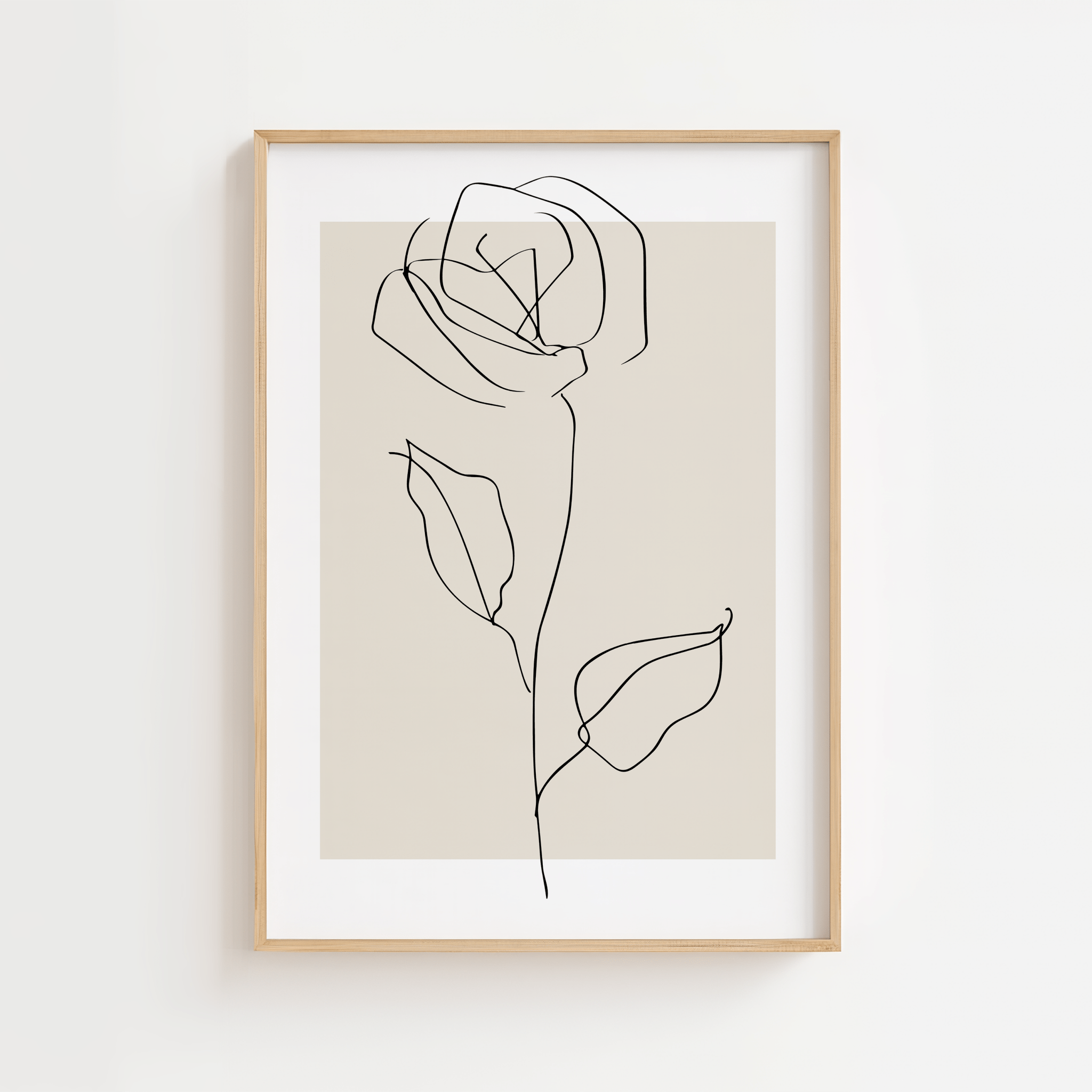 Werten Sie Ihre Einrichtung mit dem Poster „Botanical Rose“ im feinen Linienstil und in Beigetönen auf. Dieses abstrakte Poster ist ideal für das Wohnzimmer, wo es eine ruhige und elegante Atmosphäre schafft. Eine zeitlose Wanddekoration, die moderne Kunst und klassische Ästhetik vereint, perfekt für das Herzstück des Zuhauses