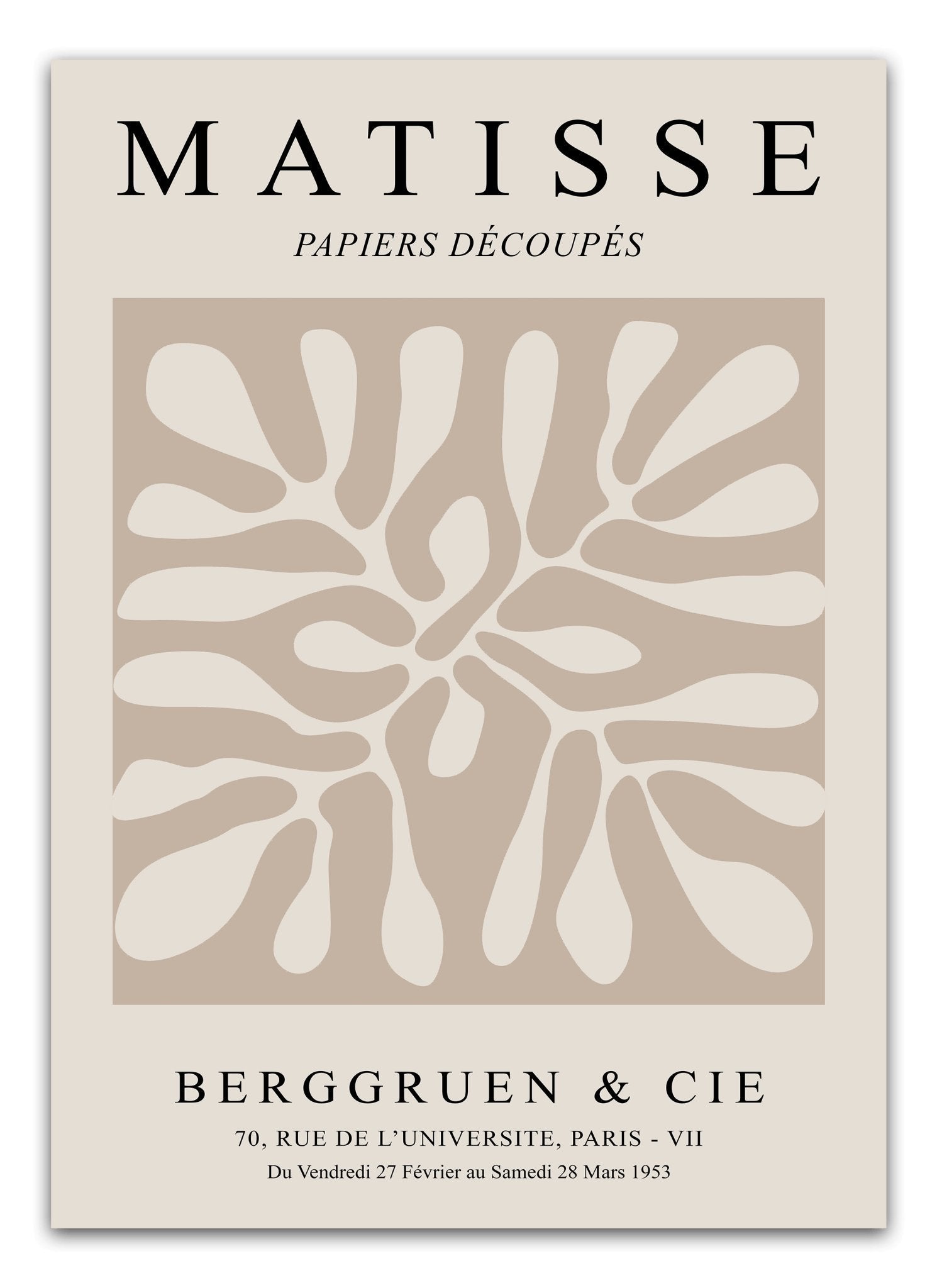 Das Poster „Klassisches Mehl – ​​Matisse“ ist ein Kunstposter, das von Henri Matisses spielerischem Umgang mit Form und Farbe inspiriert ist. Das organische Motiv erinnert an ausgeschnittene Blütenblätter und die freie Bewegung der Natur und vereint sich zu einem harmonischen und lebendigen Ausdruck.