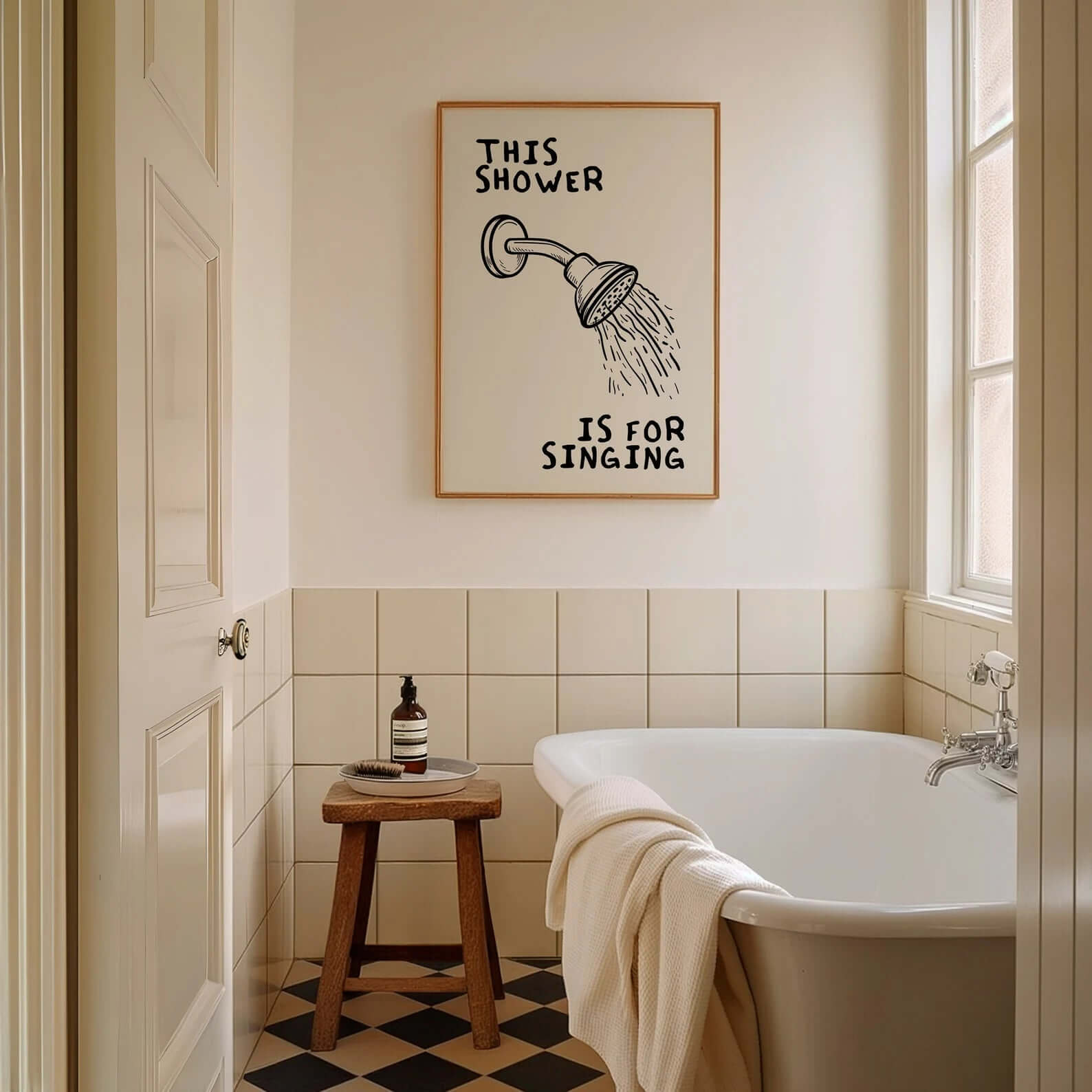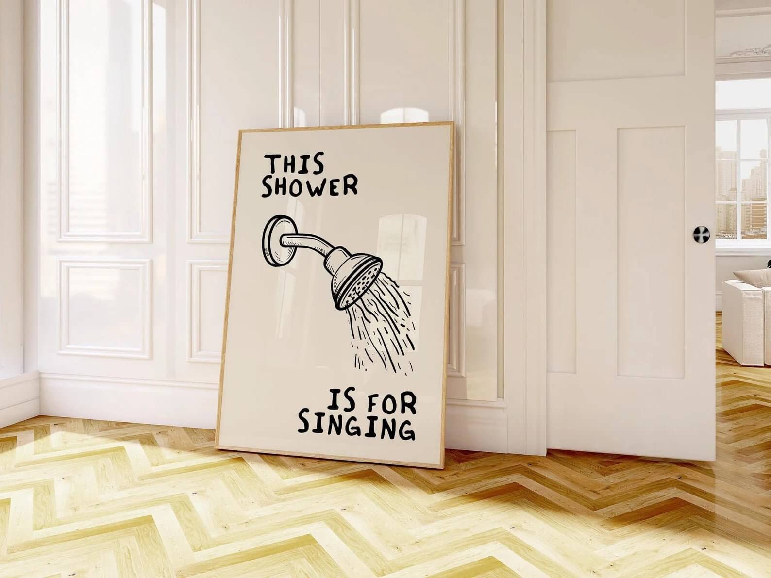 Skab glæde og karakter i dit badeværelse med denne sjove og stilfulde plakat. Også oplagt som gave til sangglade venner eller roomies!