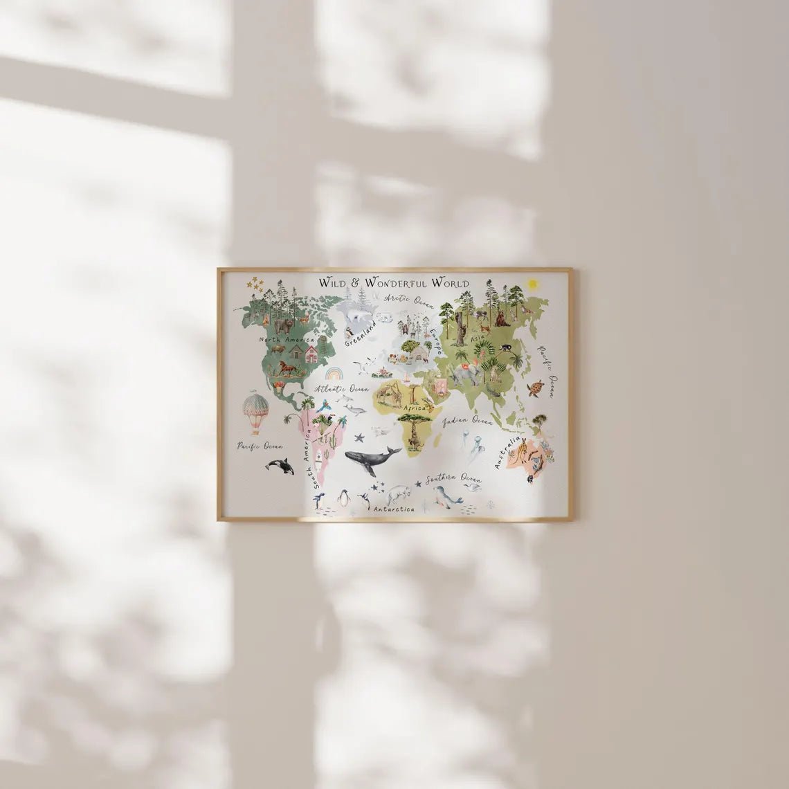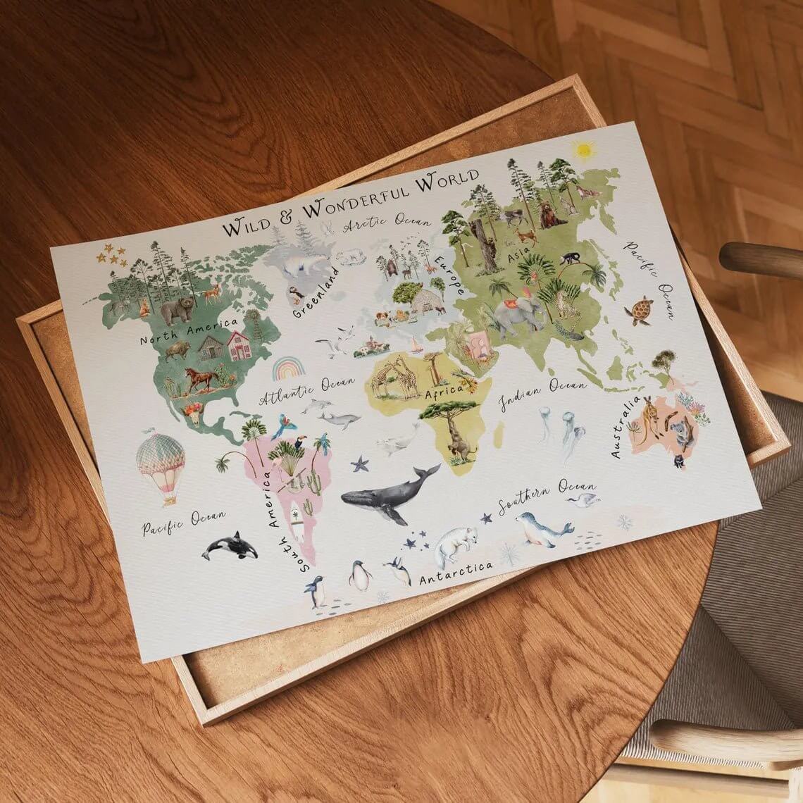 Denne farverige verdenskort plakat børn er perfekt til børneværelser, legehjørner eller skoler, hvor leg og læring gerne må gå hånd i hånd. Et dekorativt og pædagogisk element, som samtidig skaber hygge og eventyrlyst.
