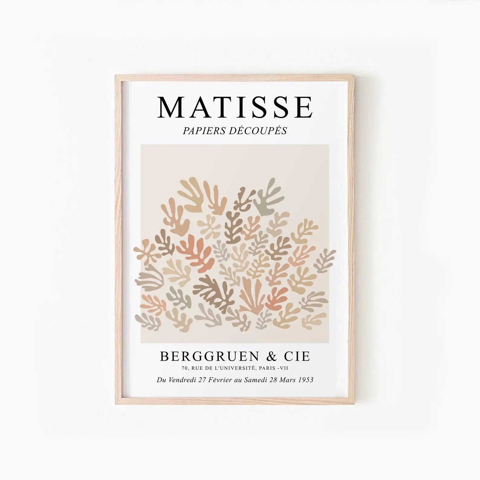 Beige Papiers – Matisse Poster is a stylish and harmonious art poster inspired by Henri Matisse's characteristic paper cuts and organic shapes. In this version, the iconic cutouts are reproduced in warm, beige shades, creating a calm and balanced atmosphere in the home.
