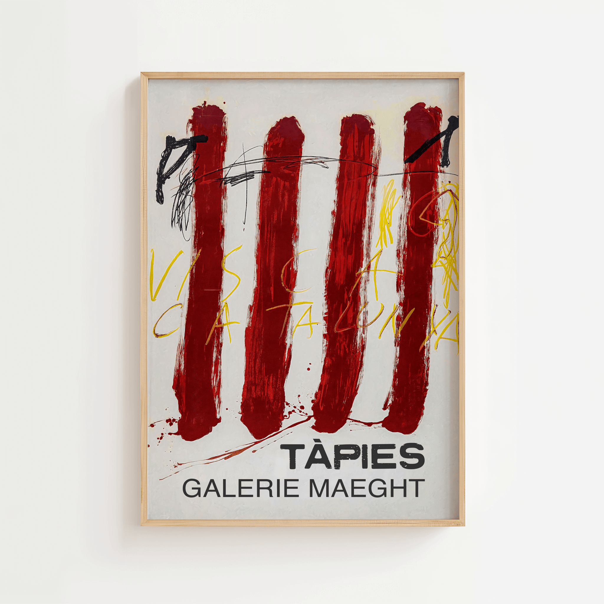Tapies Antoni Tapies - Galerie Maeght Poster is a fascinating art poster that captures Antoni Tapies' distinctive and abstract style. Part of the renowned collection from Galerie Maeght, the poster showcases Tapies' experimental approach to textures and symbolism. With its raw aesthetic and deep meaning, it fits perfectly into modern homes where art and design go hand in hand. This poster is ideal for those who want to add a touch of avant-garde art to their wall decor, and it works perfectly as part of an artistic poster wall