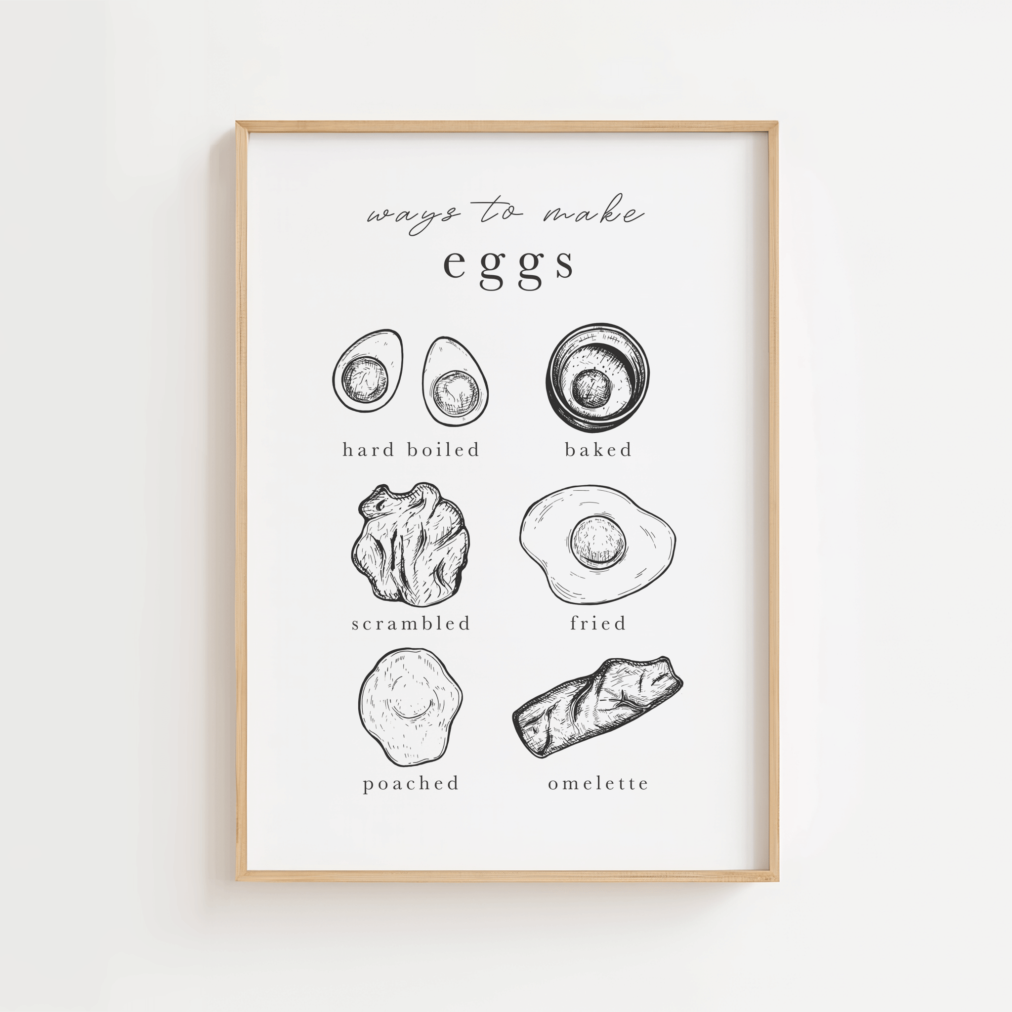 Upgrade your kitchen with our "Ways To Make Eggs Poster". This stylish and informative poster shows different ways to prepare eggs, making it both decorative and useful. Perfect for inspiring your cooking skills and adding an artistic touch to your kitchen walls. Printed on high quality paper for long-lasting durability. Make your kitchen walls both functional and beautiful with our exclusive range of kitchen posters. Buy now and bring creativity into your kitchen!
