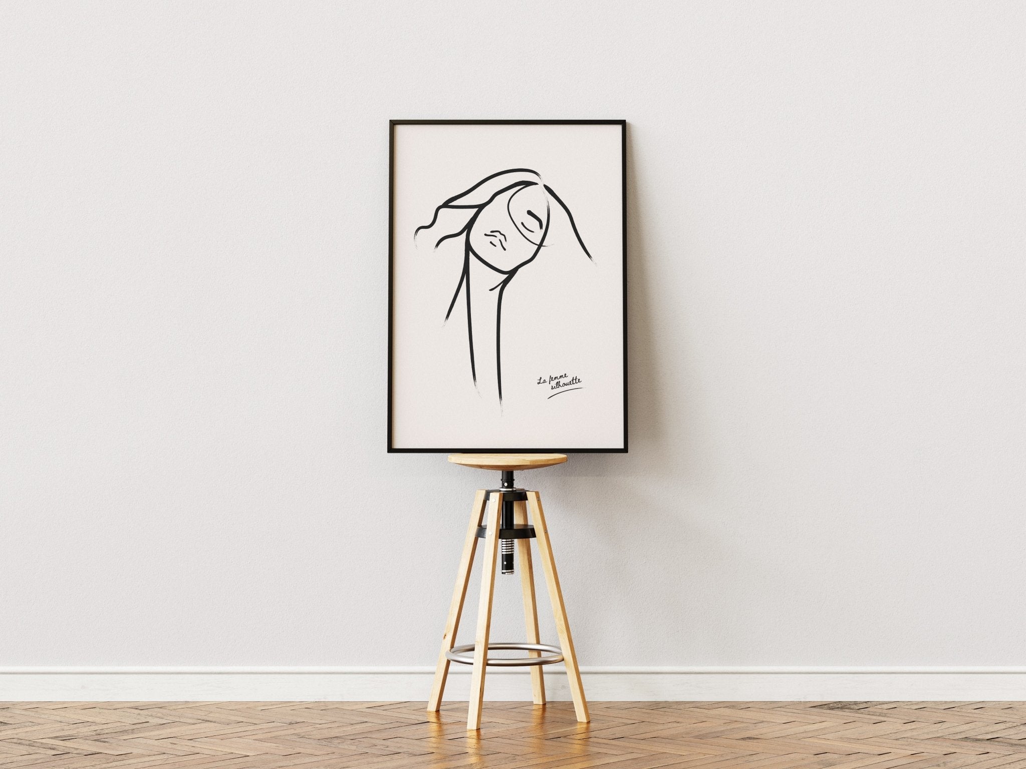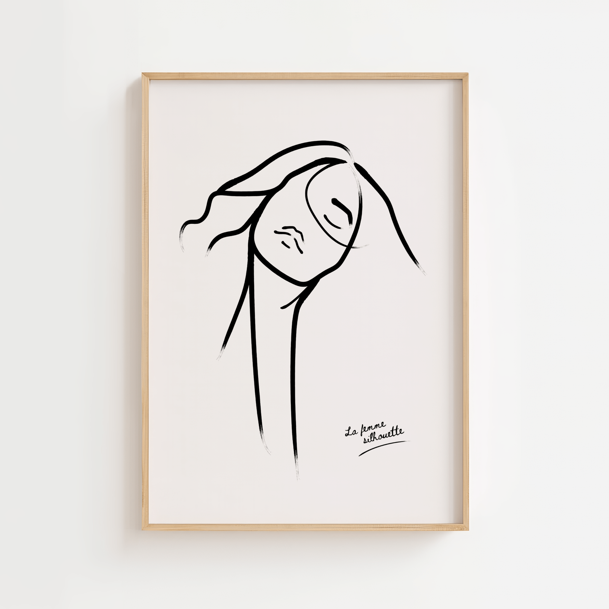 Tilføj elegance og feminint udtryk til dit hjem med La Femme - Silhouette Plakat. Denne stilrene og minimalistiske kunstplakat fremhæver en smuk kvindelig silhuet, skabt med enkle, organiske linjer. Perfekt til dig, der elsker moderne og tidløs vægkunst.