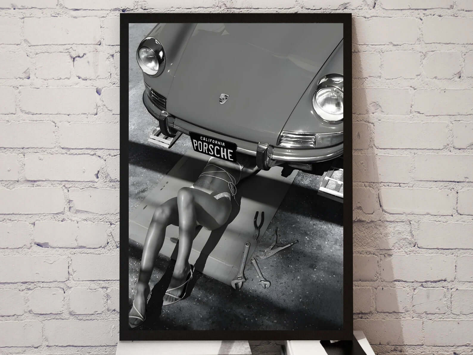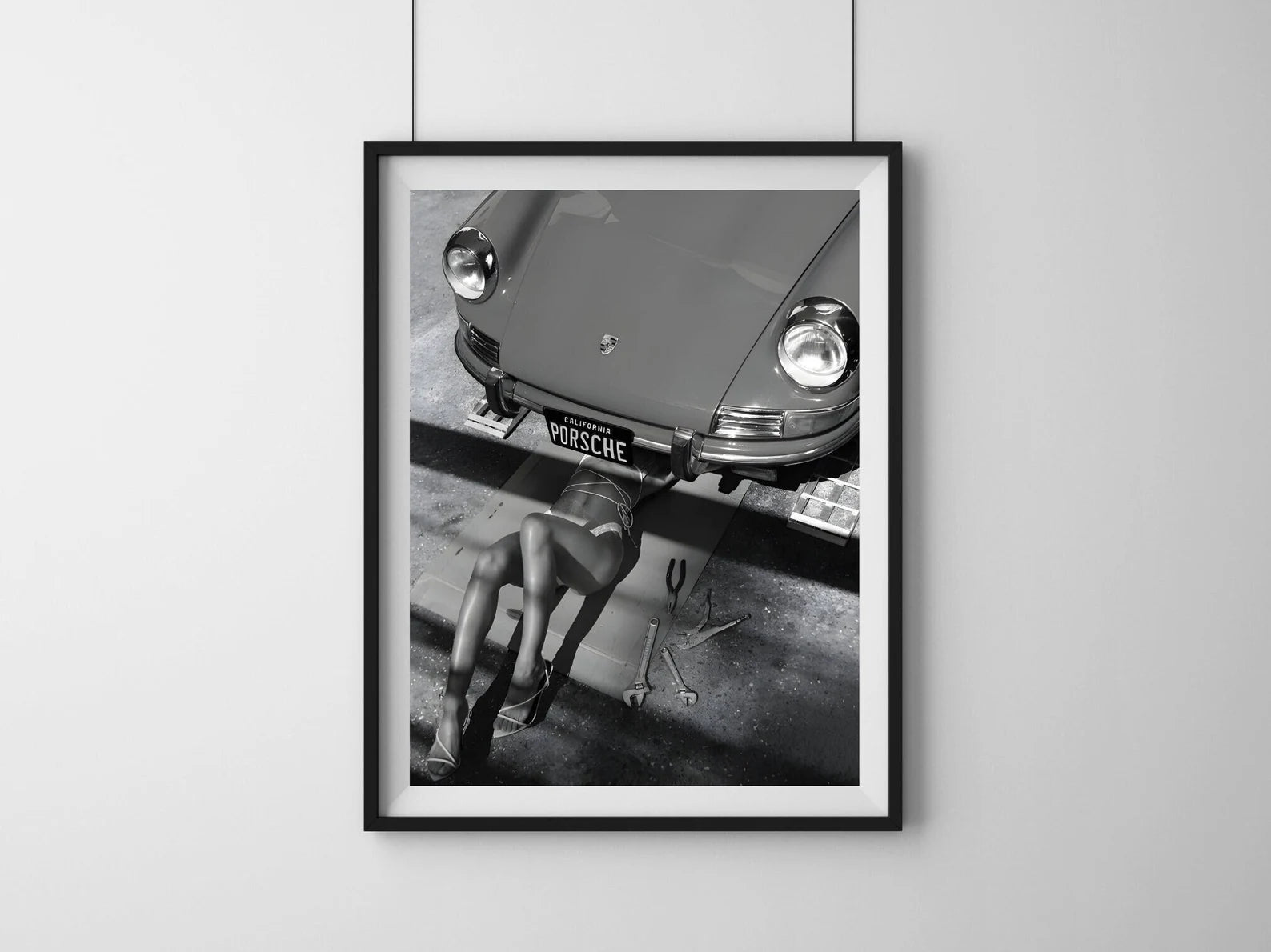 Skab et dramatisk og luksuriøst udtryk i dit hjem med Porsche Noir – Fashion Plakat. Denne sort/hvide plakat kombinerer et ikonisk Porsche-motiv med et sensuelt fashion-inspireret udtryk, hvilket gør den til et stærkt og provokerende statement piece.