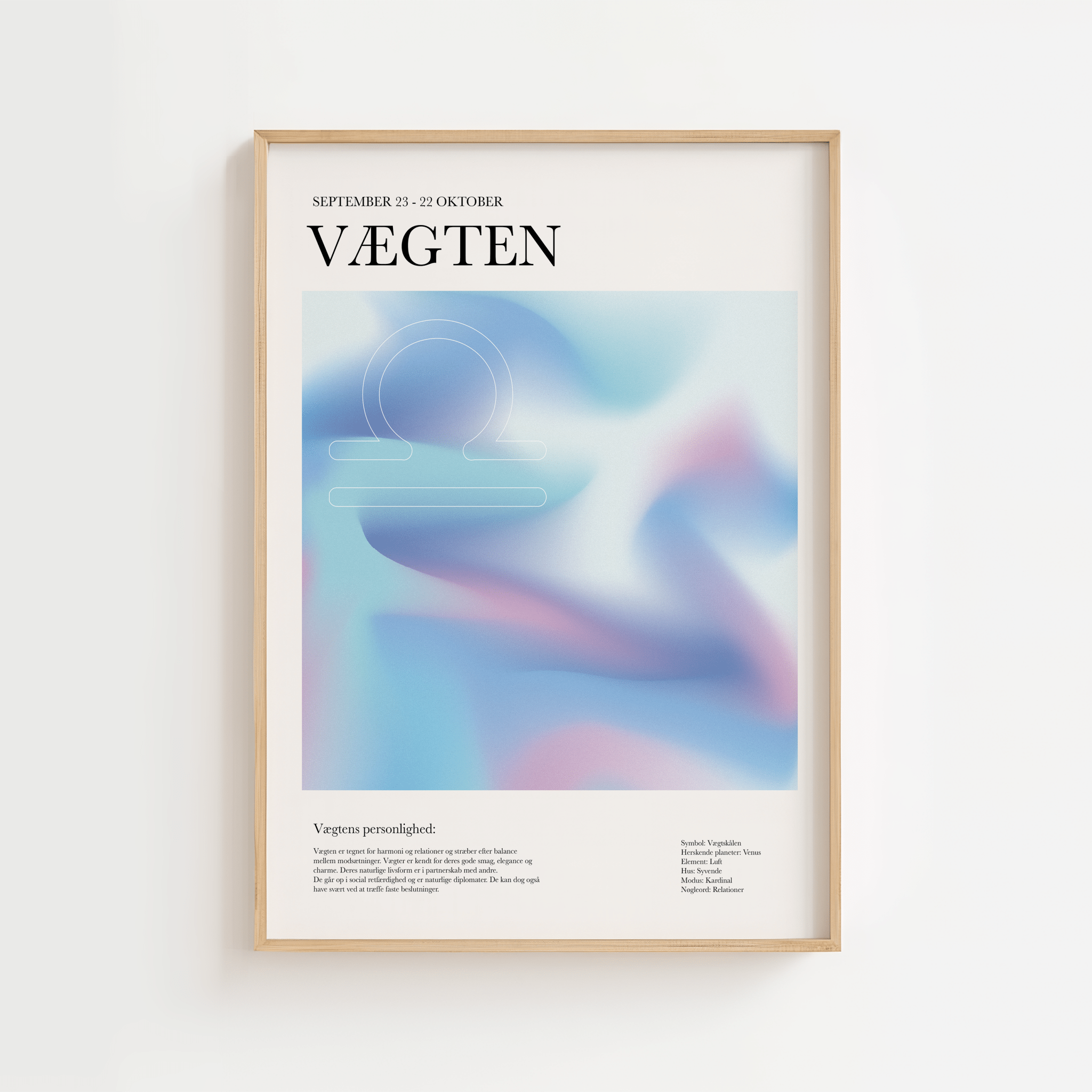 Vægten er kendt for sin sans for balance, skønhed og retfærdighed – og denne farverige plakat afspejler netop dét. Med et moderne og æstetisk design er denne stjernetegns plakat perfekt til vægte, der elsker ægte harmoni i både omgivelser og relationer.