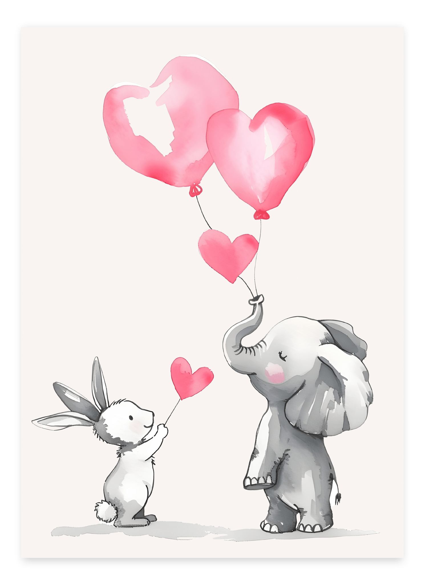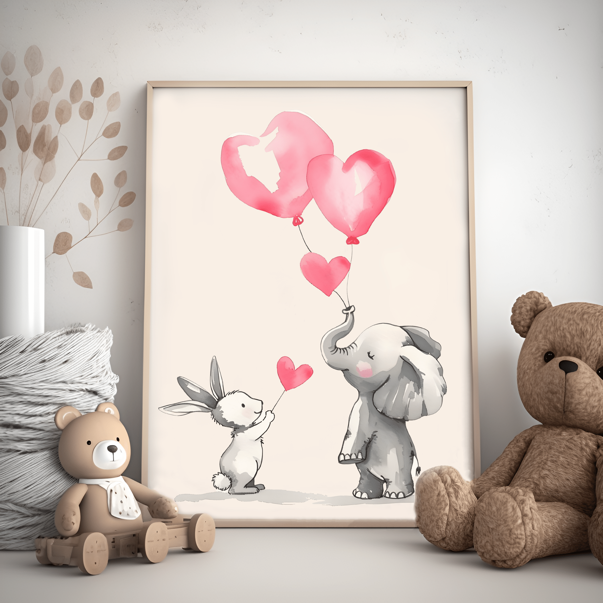 Plakaten passer både til drenge- og pigeværelser og kan kombineres med andre eventyrlige motiver for at skabe en legende billedvæg. Trykt på kvalitetsmateriale med skarpe detaljer og smukke farver, sikrer Dyr med Balloner - Børneplakat, at værelset bliver fyldt med glæde og kreativitet.