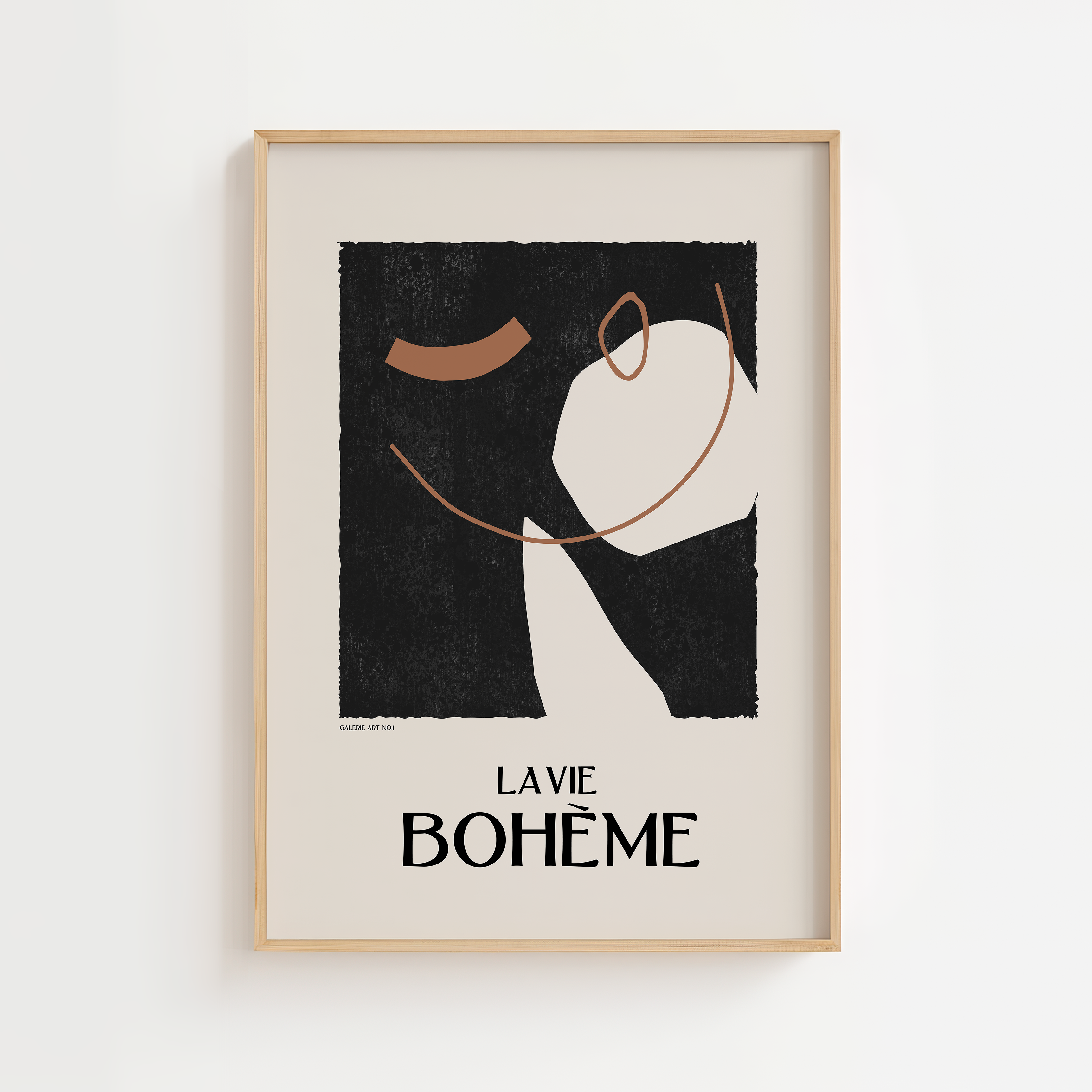 La Vie Bohème – Galerie Maeght Plakat kombinerer elegant minimalisme med fransk kunstnerisk flair. Plakaten er inspireret af den legendariske Galerie Maeght og har et unikt abstrakt motiv i jordtoner og sort, som skaber en rolig og sofistikeret stemning. Med sin tydelige reference til det boheme liv og kunstens verden passer den perfekt til en billedvæg, kontor eller stueindretning. Et stilfuldt valg til dig, der elsker fransk kunst, modernisme og æstetisk design.