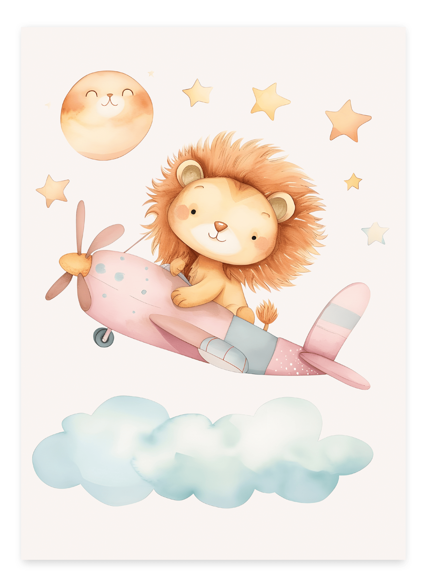 Lad fantasien tage fart med Lion in a Pink Plane - Børneplakat! Denne charmerende børneplakat viser en sej løve, der styrer sit lyserøde fly gennem skyerne. Perfekt til børn, der elsker dyr, flyvemaskiner og drømmende eventyr.