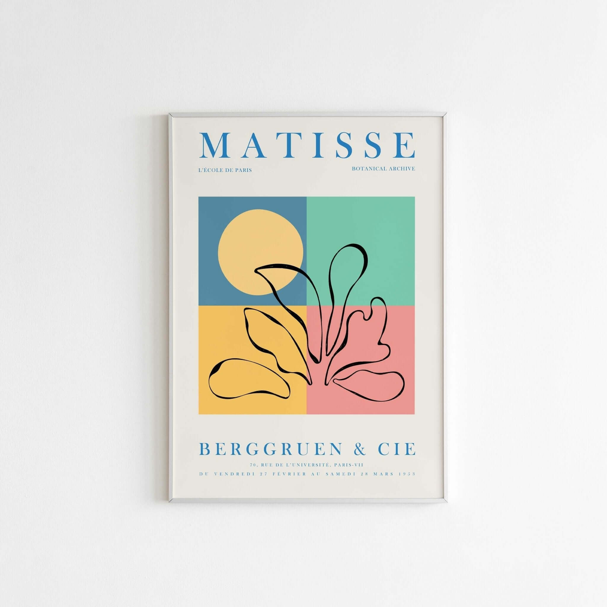 Erleben Sie die brillante Farbpalette und künstlerische Schönheit unseres farbenfrohen Matisse-Posters „Botanical Archives“. Inspiriert von Matisses einzigartigem Stil bringt dieses lebendige Poster eine Farbexplosion in Ihr Zuhause. Mit einer perfekten Balance zwischen botanischen Elementen und abstrakten Formen schafft dieses Poster eine auffällige und künstlerische Atmosphäre an jeder Wand. Unser Poster „Botanisches Archiv“ ist in hoher Qualität gedruckt und eignet sich ideal, um jedem Raum eine lebendige und inspirierende Note zu verleihen. Entdecken Sie unsere große Auswahl an Postern und setzen Sie mit diesem brillanten Matisse-Poster als zentralem künstlerischen Element ein persönliches Statement in Ihrem Zuhause