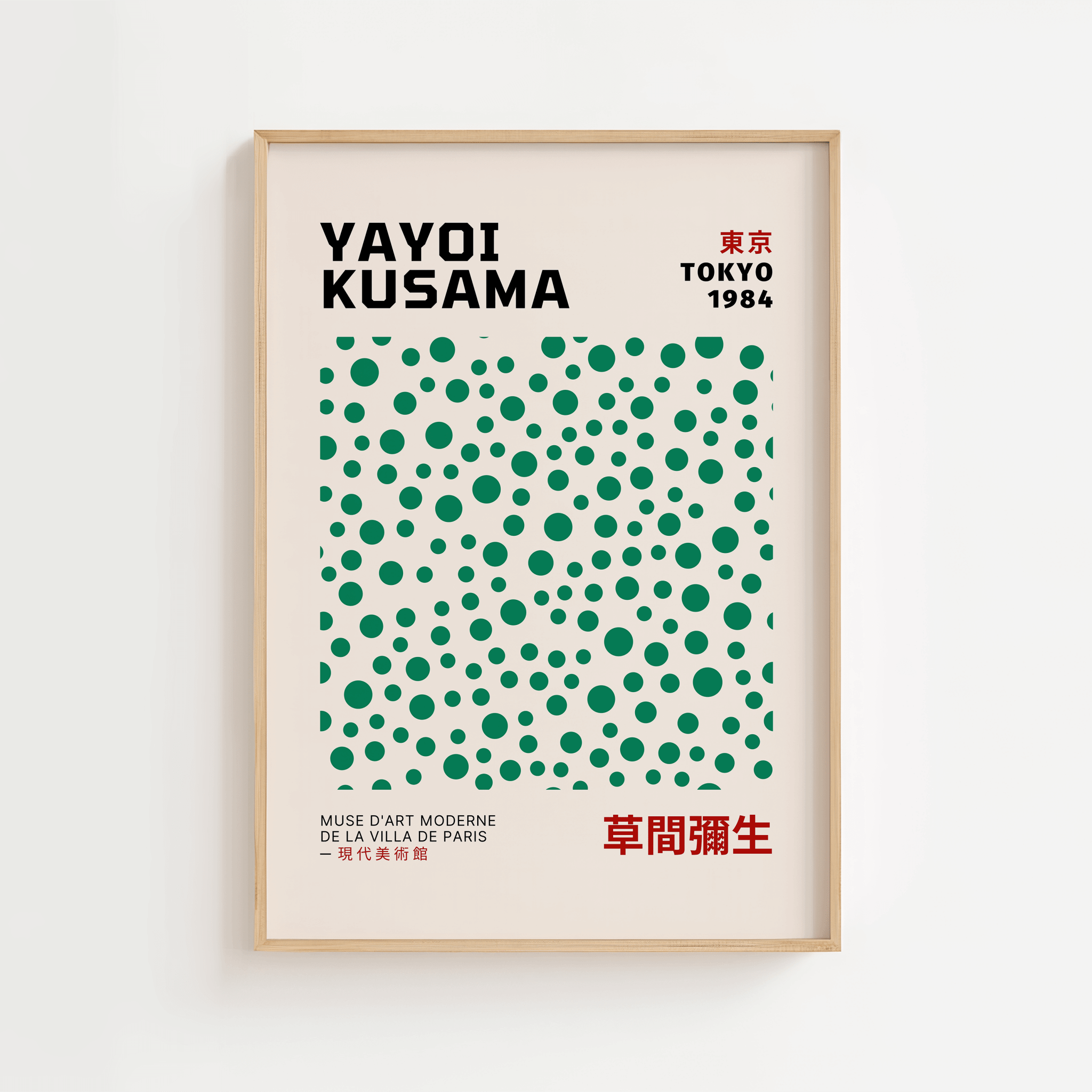 Opdag den legendariske kunstner Yayoi Kusamas univers med Dots in Green – Yayoi Kusama Plakat. Motivet er kendetegnet ved de ikoniske grønne prikker, som Kusama er verdenskendt for. Plakaten kombinerer enkelthed med stærk visuel effekt og giver et moderne, kunstnerisk udtryk til hjemmet.