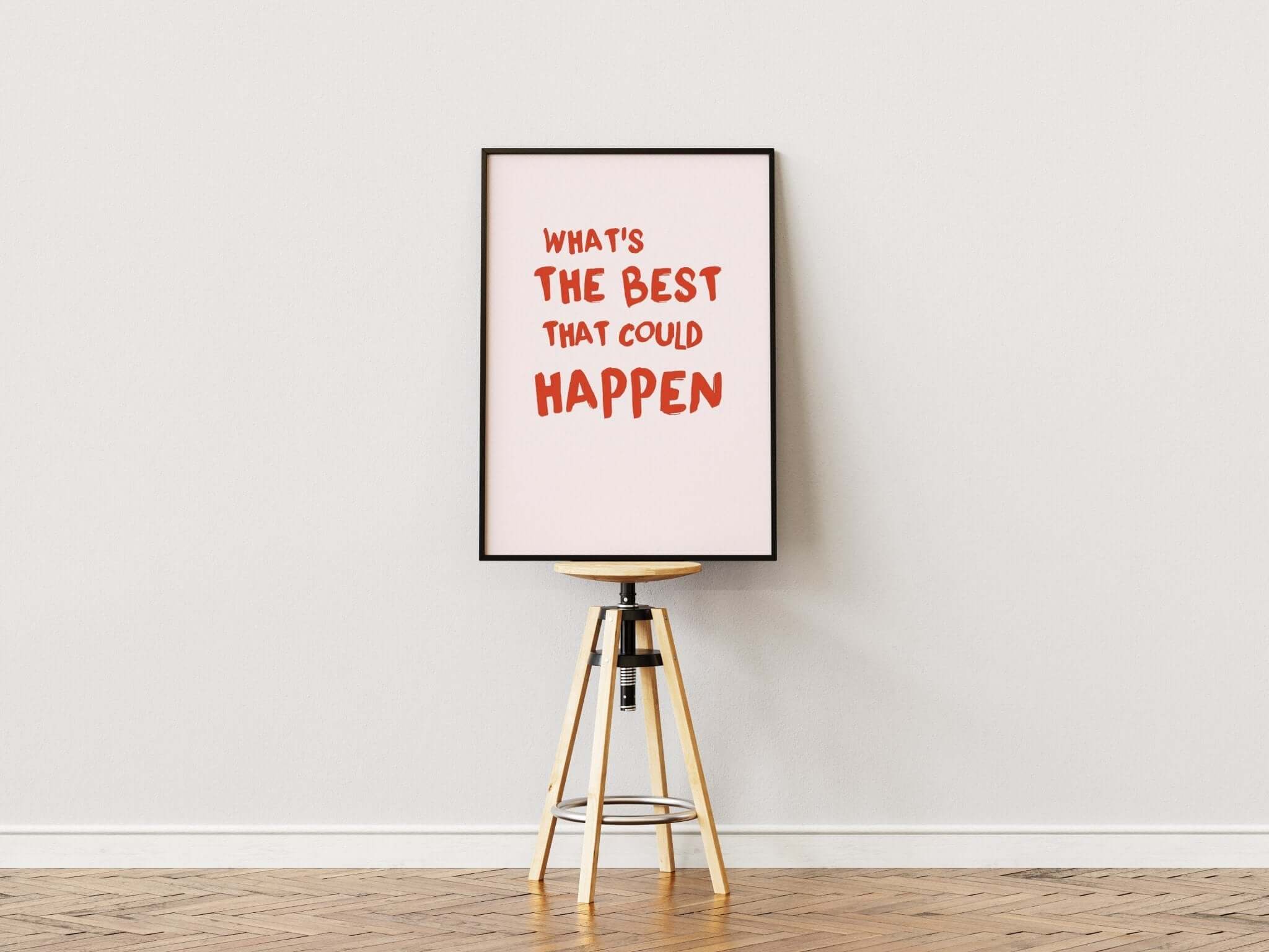 Lad optimisme præge din hverdag med What’s the Best That Could Happen - Pink Plakat. Denne plakat pink fungerer som en daglig påmindelse om at tænke positivt og tage chancer. Med sit enkle, men kraftfulde budskab og smukke pink baggrund er den perfekt til både hjemmet og kontoret.