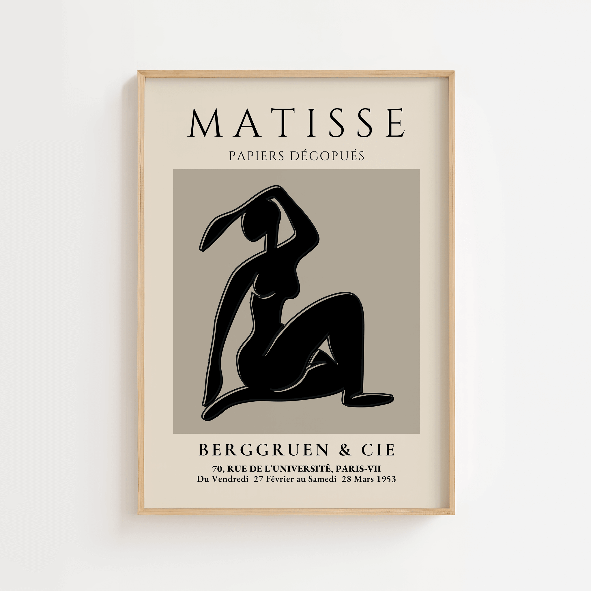 Tilføj et kunstnerisk og moderne touch til dit hjem med Black Madame - Matisse Plakat. Denne plakat er inspireret af Henri Matisses berømte "cut-out" teknik, hvor simple, men kraftfulde former skaber en harmonisk komposition. Den sorte silhouet på den lyse baggrund giver et stærkt visuelt udtryk, der passer perfekt ind i både minimalistiske og klassiske indretninger.