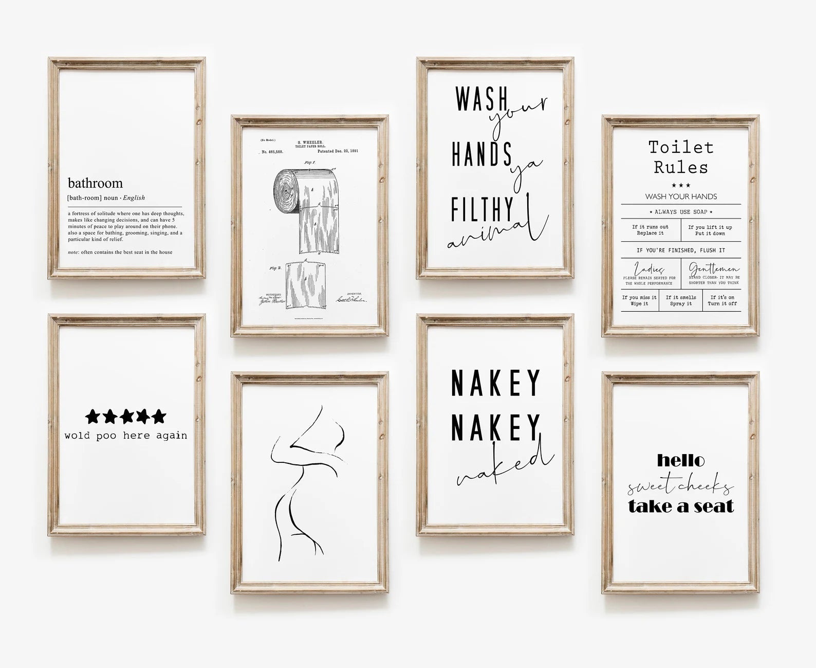 Peppen Sie Ihr Badezimmer mit diesem humorvollen „Toilettenregeln“-Poster auf! Es vereint die wichtigsten (und lustigsten!) Regeln für den Toilettengang – vom Händewaschen und Seifengebrauch bis hin zu klassischen Sprüchen für Damen und Herren. Perfekt, um Gäste zum Lachen zu bringen und Ihrem Badezimmer eine persönliche Note zu verleihen. Das schwarz-weiße Design passt zu jeder Einrichtung. Das Poster ist in verschiedenen Größen erhältlich und auf hochwertigem Papier gedruckt – bereit, Ihr Badezimmer ein bisschen unterhaltsamer zu gestalten.