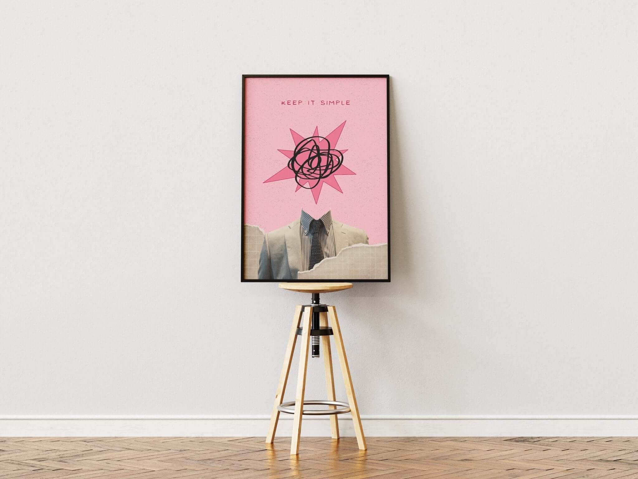 Plakaten fungerer ideelt i stuen, soveværelset eller på kontoret og kan kombineres med andre stilrene motiver for et elegant look. Trykt på kvalitetsmateriale sikrer Keep It Simple - Pink Plakat flotte farver og skarpe detaljer, så den forbliver en smuk del af din indretning i mange år.