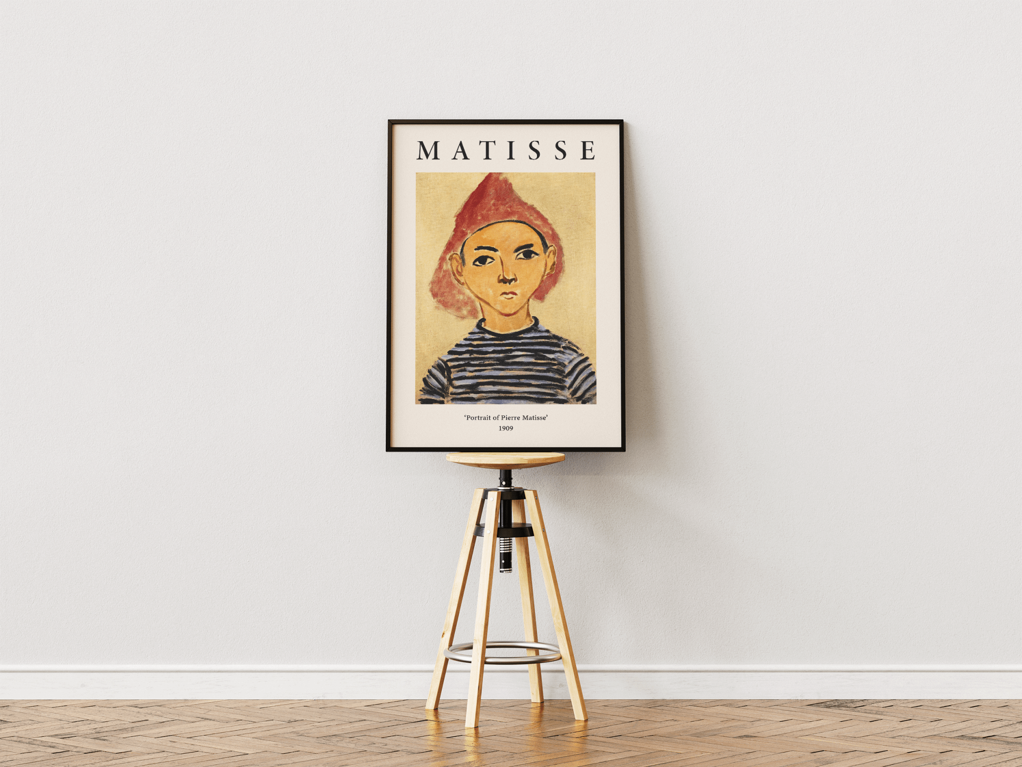 Bring kunsthistorien helt tæt på med Portrait of Pierre – Matisse Plakat, et af Henri Matisses mest elskede portrætter fra 1909. Motivet viser kunstnerens søn Pierre i en stribet trøje og med karakterfulde træk, malet i Matisses ikoniske, udtryksfulde stil.