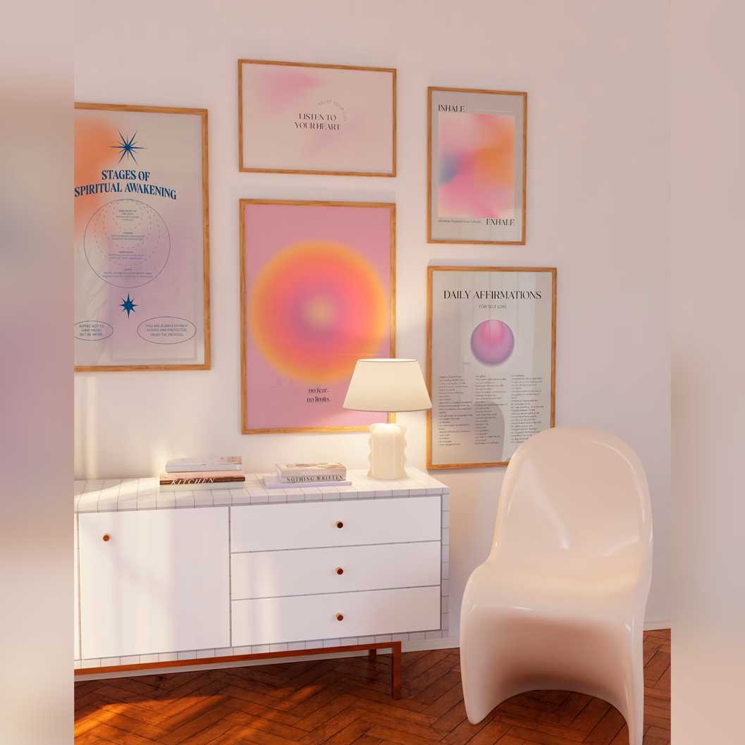Unsere spirituellen Poster repräsentieren eine Aura, die durch den Farbverlauf und ein Zitat zum Ausdruck kommt. Die Poster unterstreichen die farbenfrohe Aura durch einen minimalistischen Stil