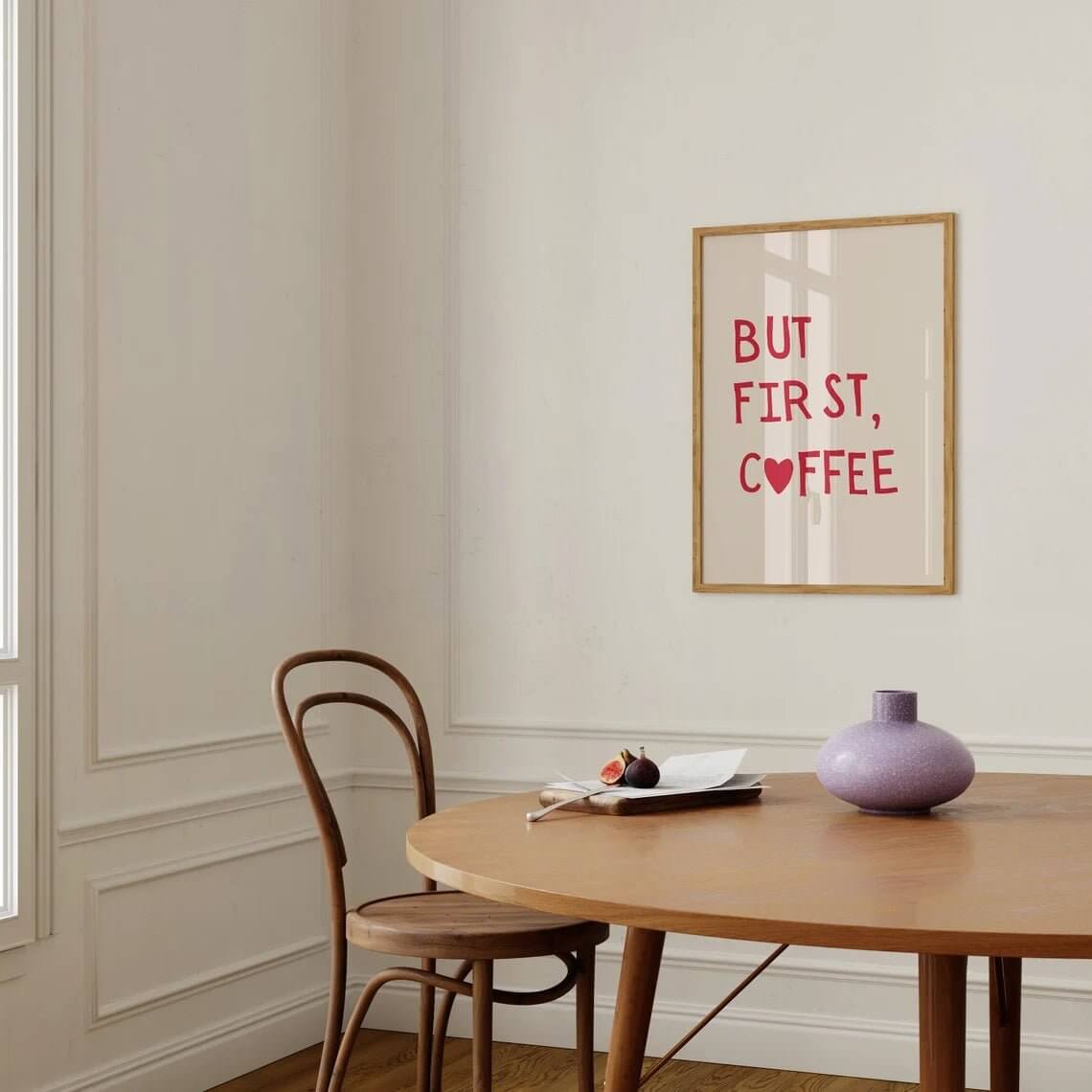 Unser Poster „Aber zuerst Kaffee“ ist für alle Kaffeeliebhaber, die wissen, dass eine gute Tasse Kaffee jeden Tag an erster Stelle steht. Mit seinem modernen Design und der auffälligen Typografie vermittelt es eine humorvolle und zugleich aussagekräftige Botschaft: Erst Kaffee, dann alles andere. Das Poster erinnert daran, den Moment zu genießen und energiegeladen und inspiriert in den Tag zu starten. Es passt perfekt in jede Küche, jedes Wohnzimmer oder Büro und verleiht jedem Raum eine persönliche und humorvolle Note. Erhältlich in verschiedenen Größen und auf hochwertigem Material gedruckt – bereit, frischen Kaffeegenuss in Ihr Zuhause zu bringen.