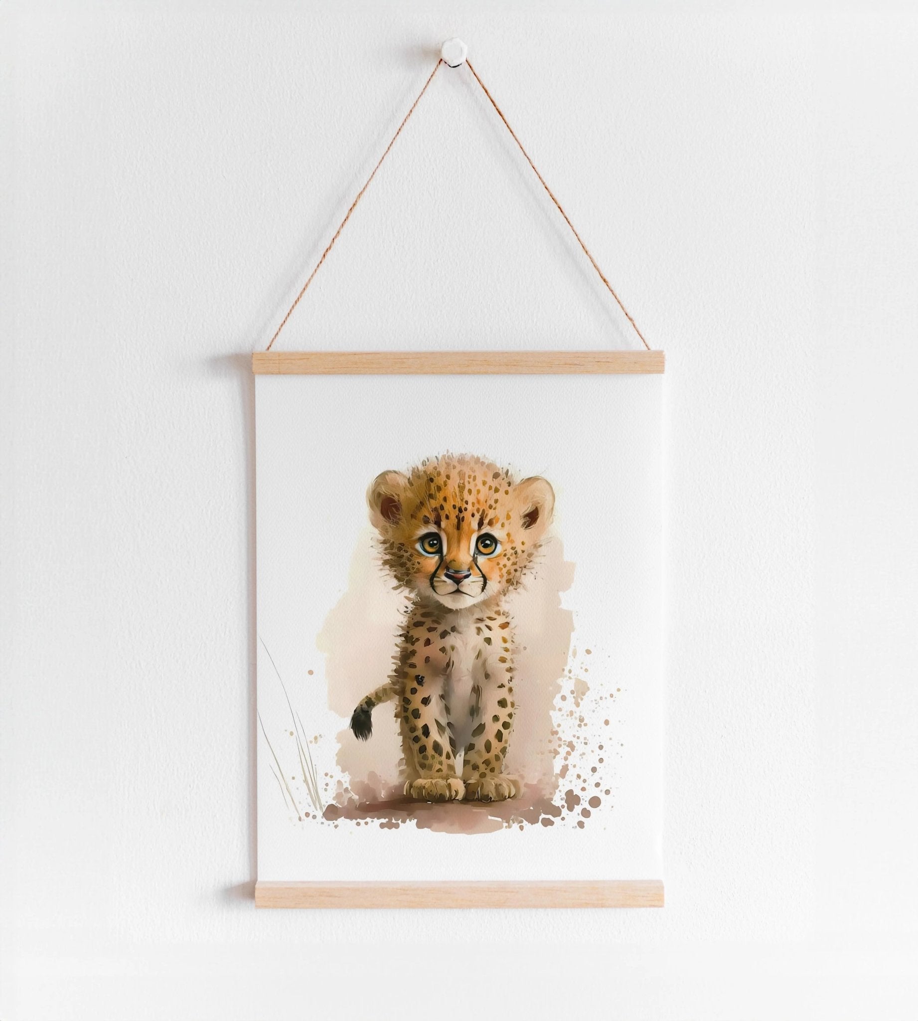 Kinderposter mit Tieren – „Leopard“: Schaffen Sie mit unserem farbenfrohen Leopardenposter eine exotische und aufregende Umgebung im Zimmer Ihres Kindes. Dieses verspielte Kinderposter fängt den eleganten Leoparden in lebendigen Farbtönen ein, die Ihr Kind inspirieren und erziehen werden.