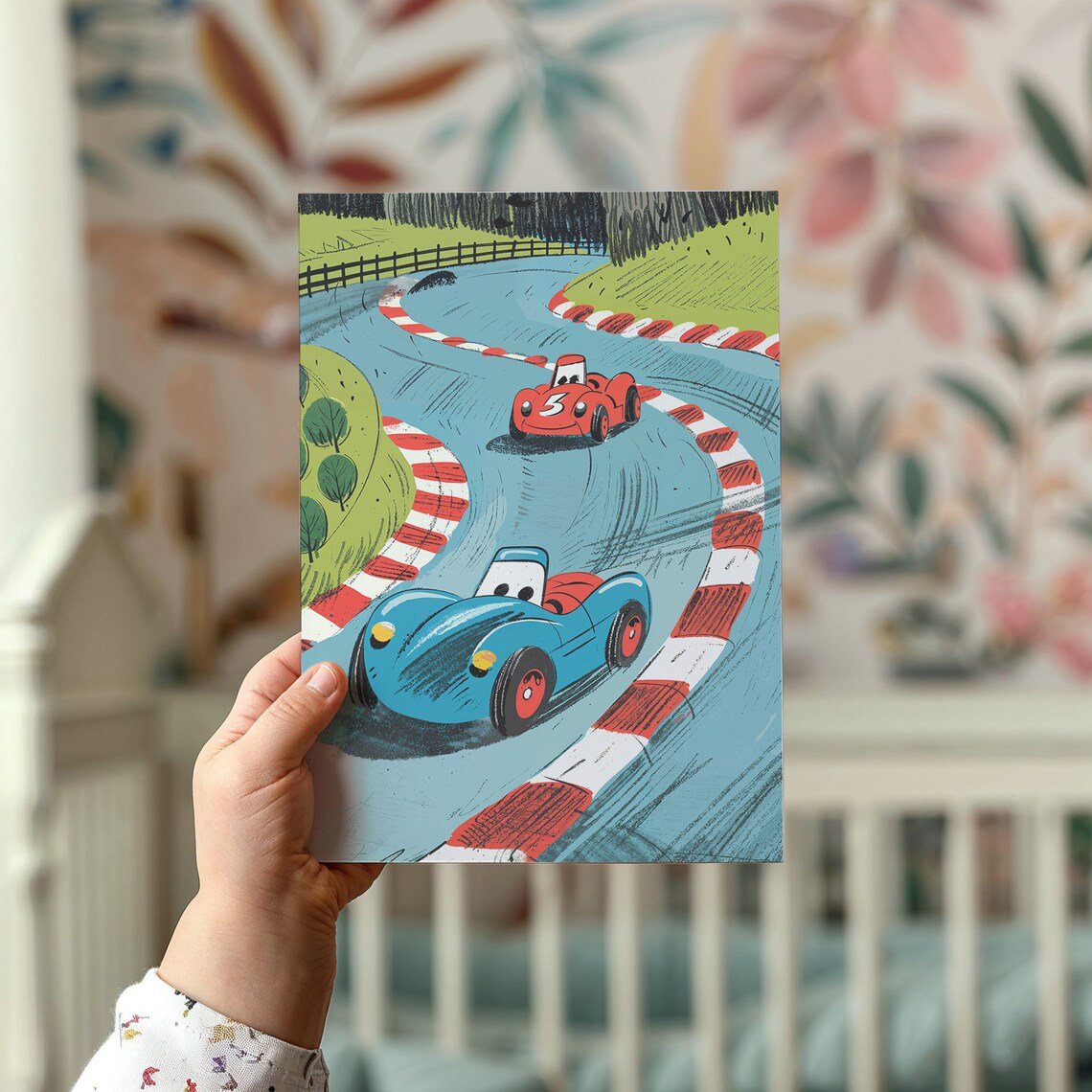 Rennauto Das Kinderposter bringt Geschwindigkeit und Spannung ins Kinderzimmer. Das farbenfrohe und energiegeladene Poster, das einen Rennwagen in Höchstgeschwindigkeit zeigt, ist perfekt für Kinder, die Autos, Geschwindigkeit und Action lieben. Es wird zweifellos jede Wand in eine spannende Vitrine für junge Autoliebhaber verwandeln. Es ist ideal für inspirierende Abenteuer und Spiele und verleiht dem Kinderzimmer eine energiegeladene und abenteuerliche Note. Ein perfektes Geschenk für Kinder, die davon träumen, schnell zu fahren!
