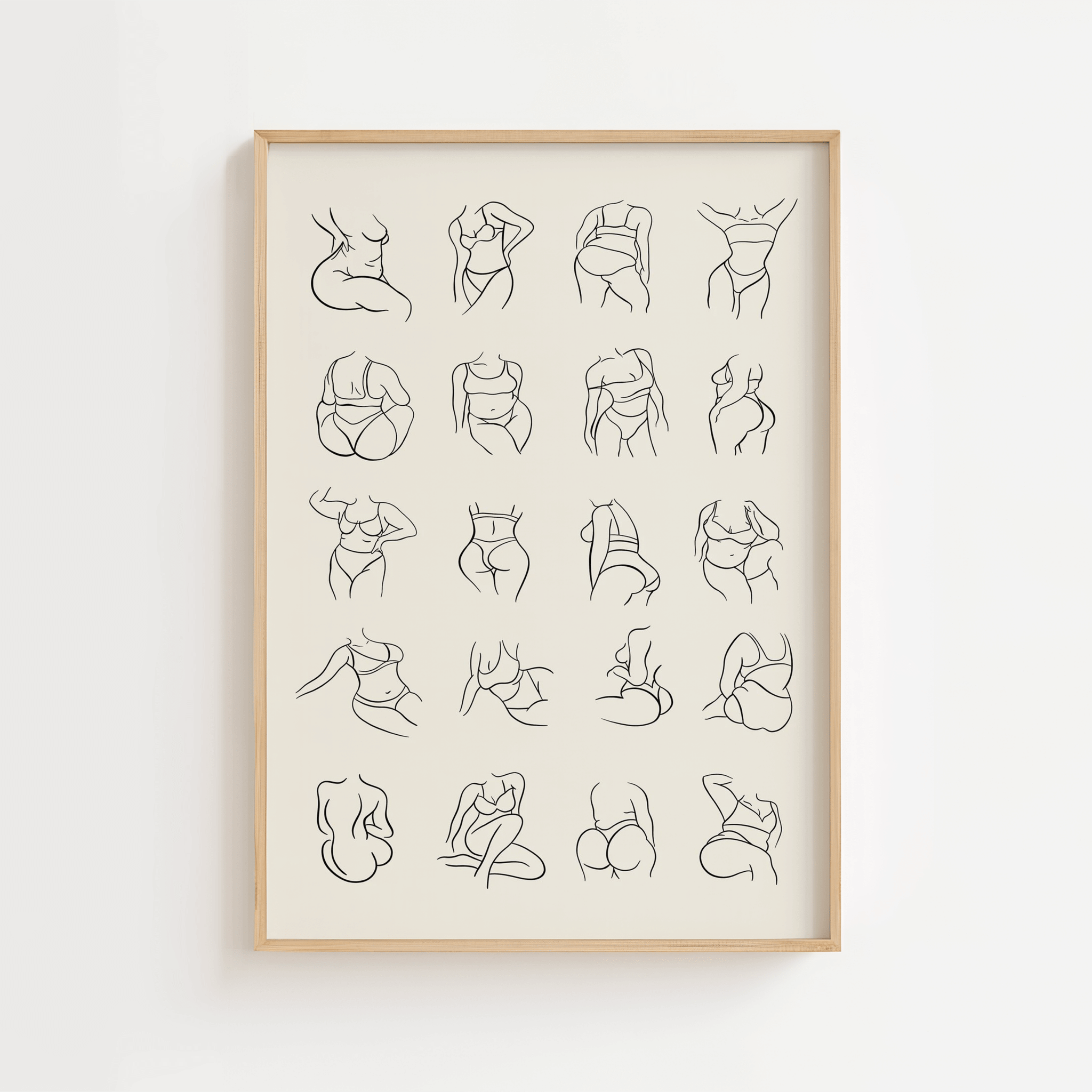 Body Positivity – Line Art Plakat er en hyldest til kropsdiversitet og naturlig skønhed. Denne stilrene plakat med bryster er skabt i et minimalistisk line art-design, der giver et elegant og moderne udtryk.