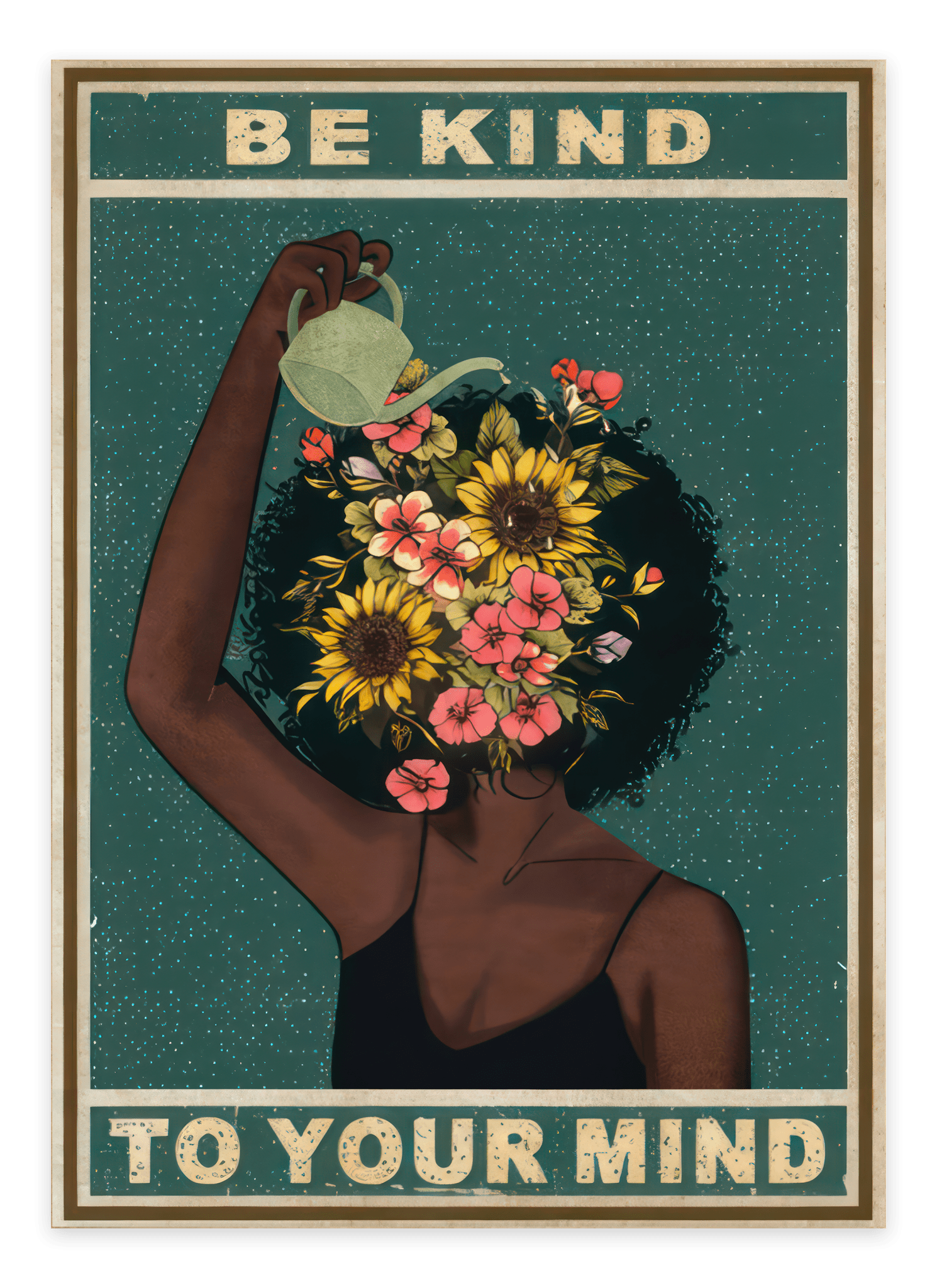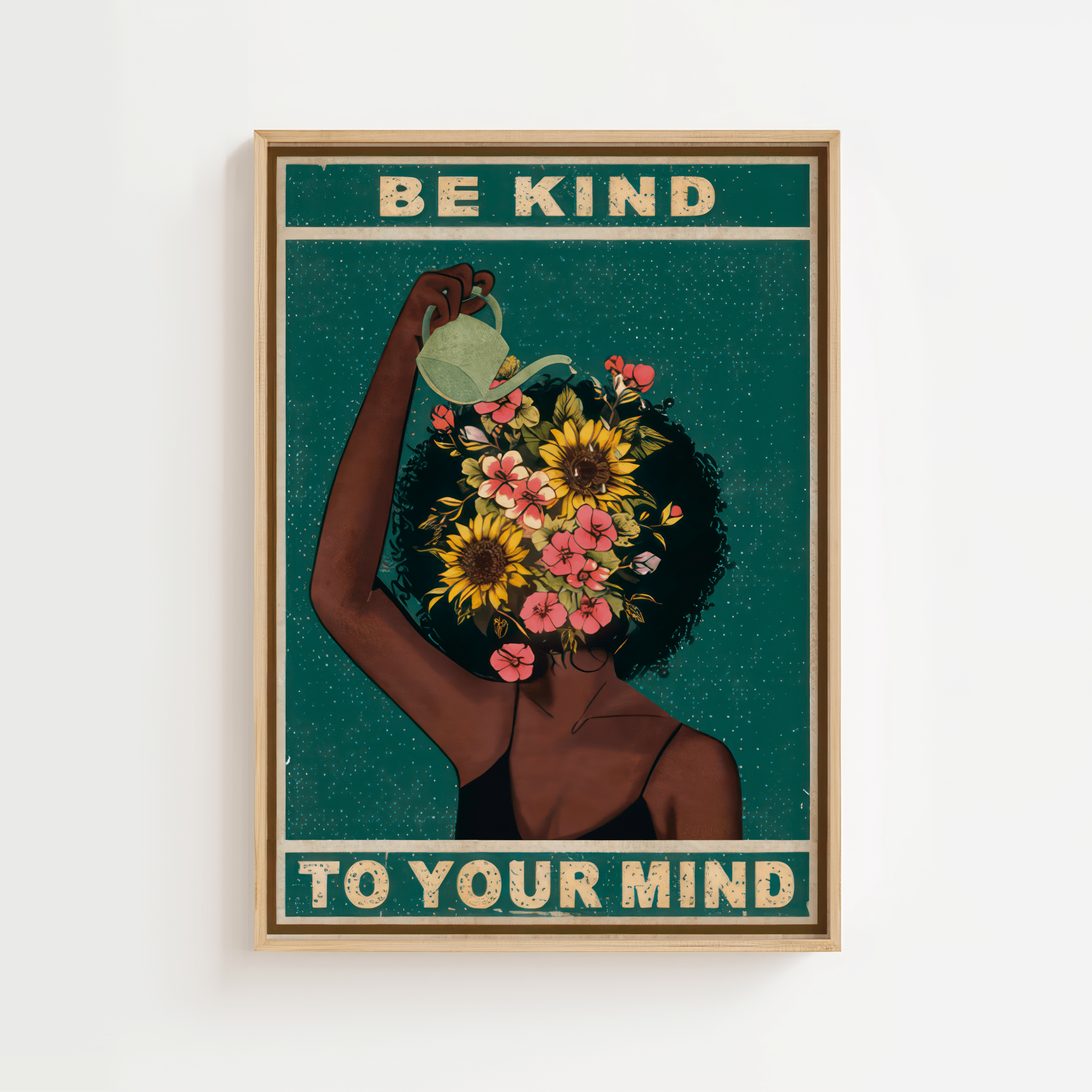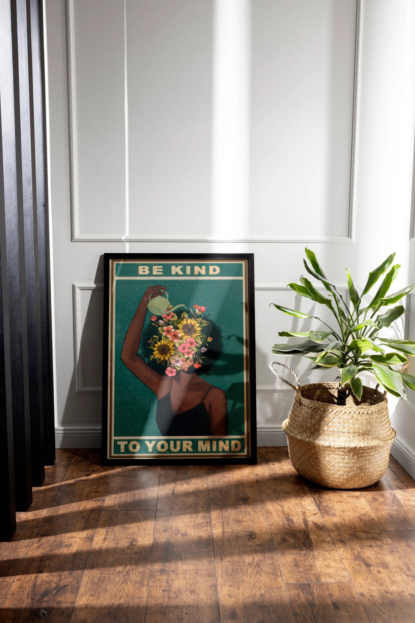 Bringen Sie Ruhe und Freundlichkeit in Ihr Zuhause mit dem Poster „Be Kind to Your Mind“ . Dieses Design kombiniert einen einfachen und eleganten Ausdruck mit einer starken Botschaft der Selbstliebe und der Fürsorge für den Geist. Perfekt für das Schlafzimmer, das Büro oder Ihren Meditationsraum, wo es Sie daran erinnern kann, eine Pause einzulegen und Ihrem geistigen Wohlbefinden Priorität einzuräumen. Ein zeitloses Poster, das sowohl inspiriert als auch das Innere des Hauses dekoriert.