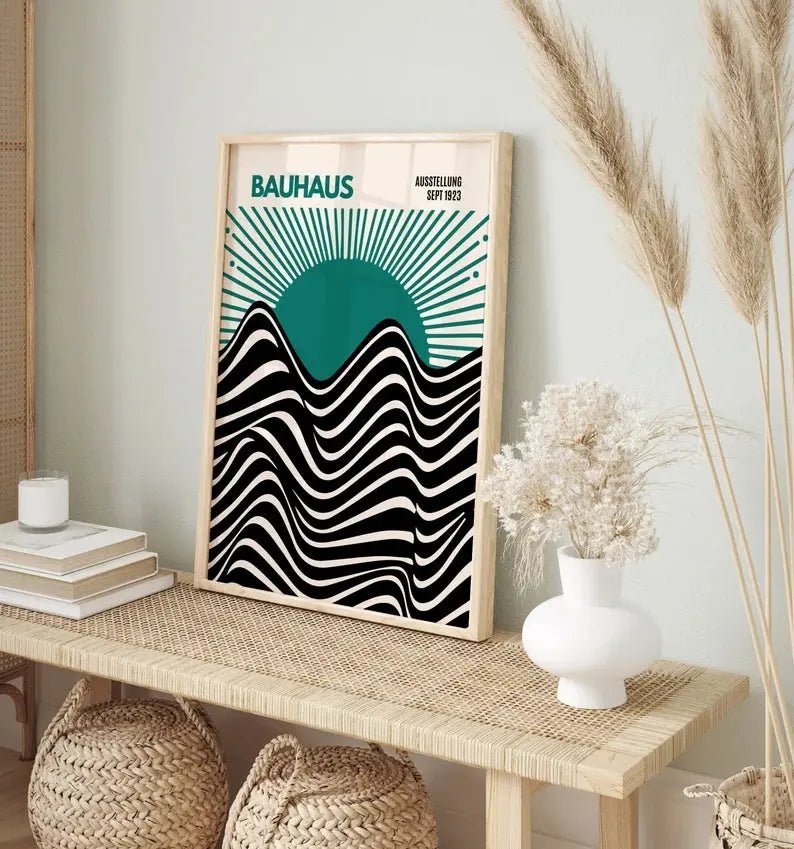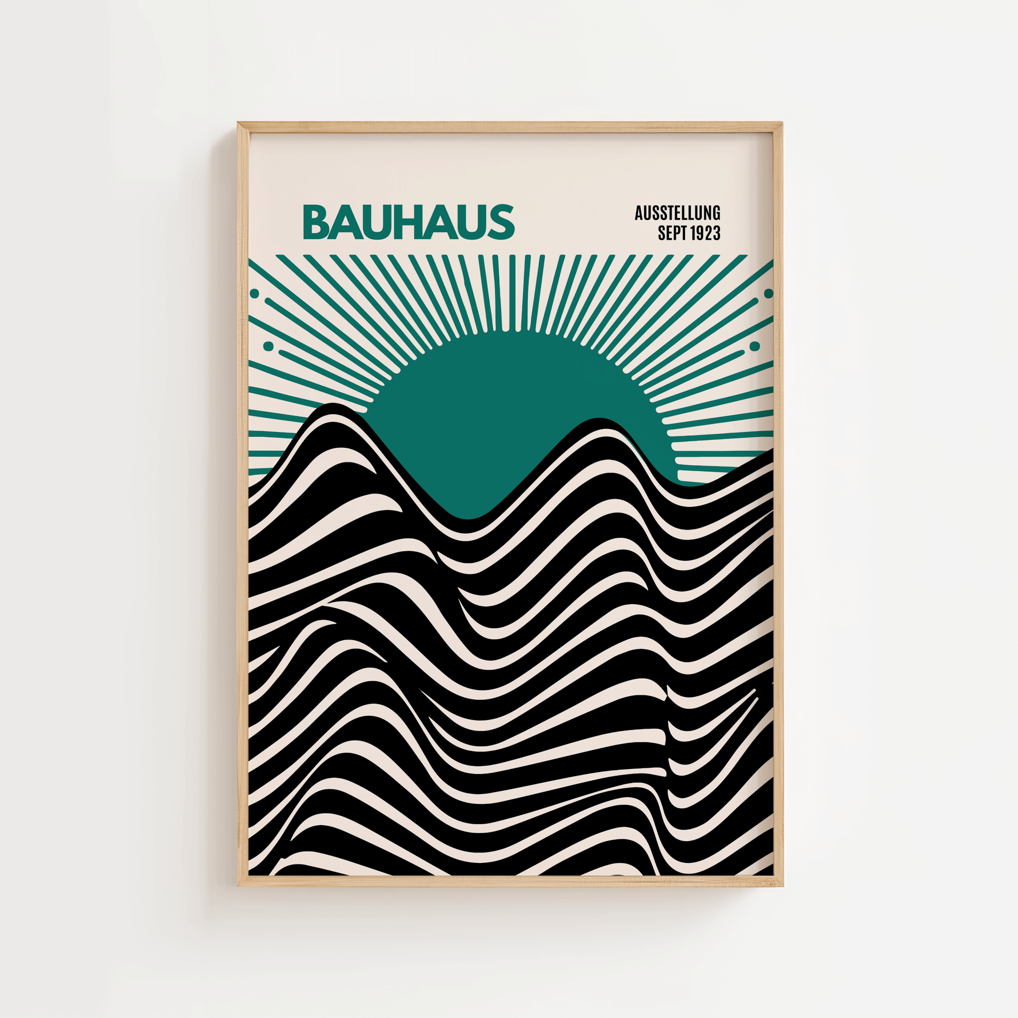 Erleben Sie den modernen Bauhaus-Stil mit unserem Poster „Green Bauhaus Sunset“. Dieses einzigartige Poster fängt die Essenz der geometrischen Formen der Bauhaus-Bewegung und das beruhigende Sonnenuntergangsgrün ein, das jedem Raum ein Gefühl von Ruhe und Harmonie verleiht.