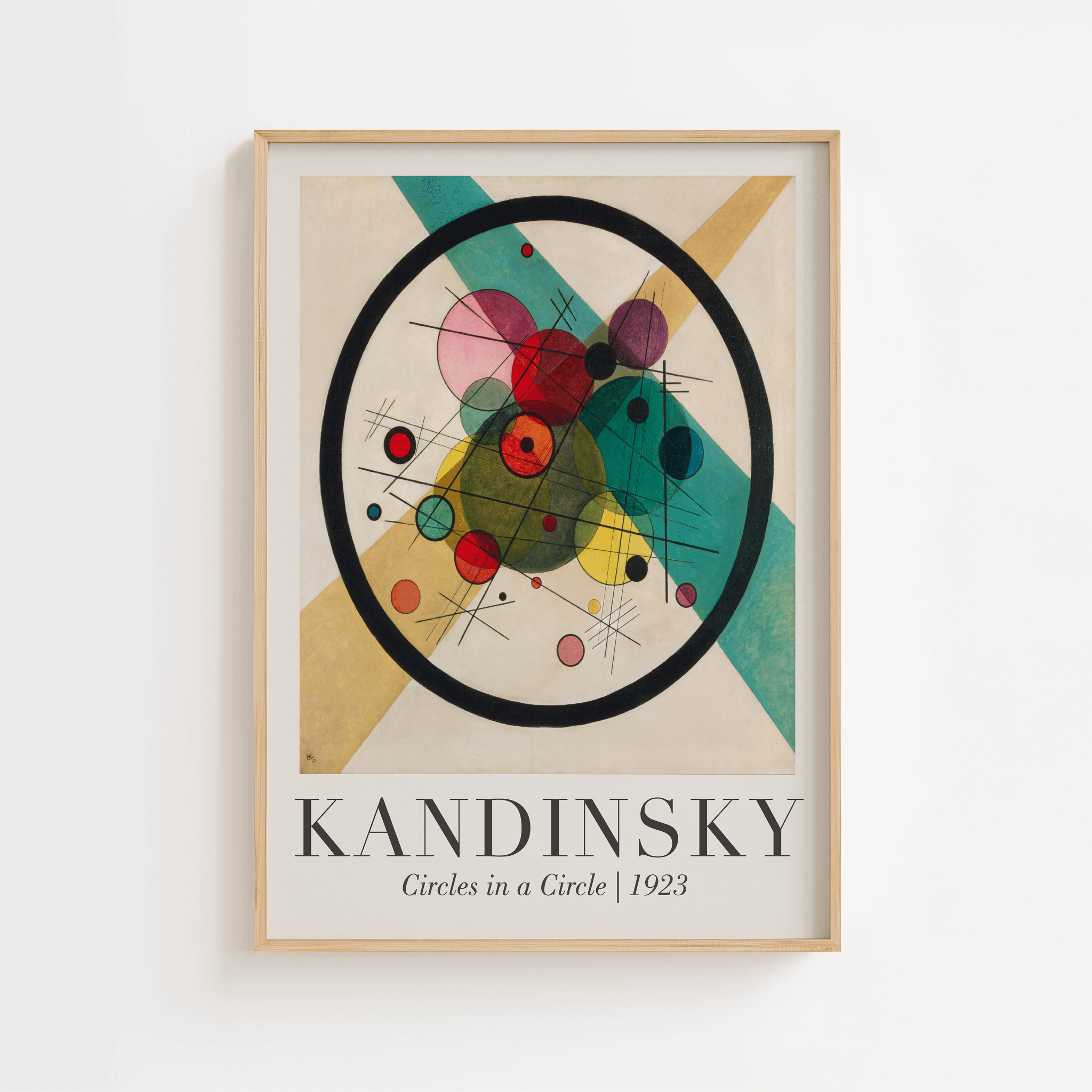 Circles in a Circle – Kandinsky Plakat er et af Kandinskys mest grafisk stærke og harmoniske værker. Kompositionen kombinerer præcise cirkler og farverige former inden for én stor cirkel – et symbol på helhed, balance og abstrakt skønhed.