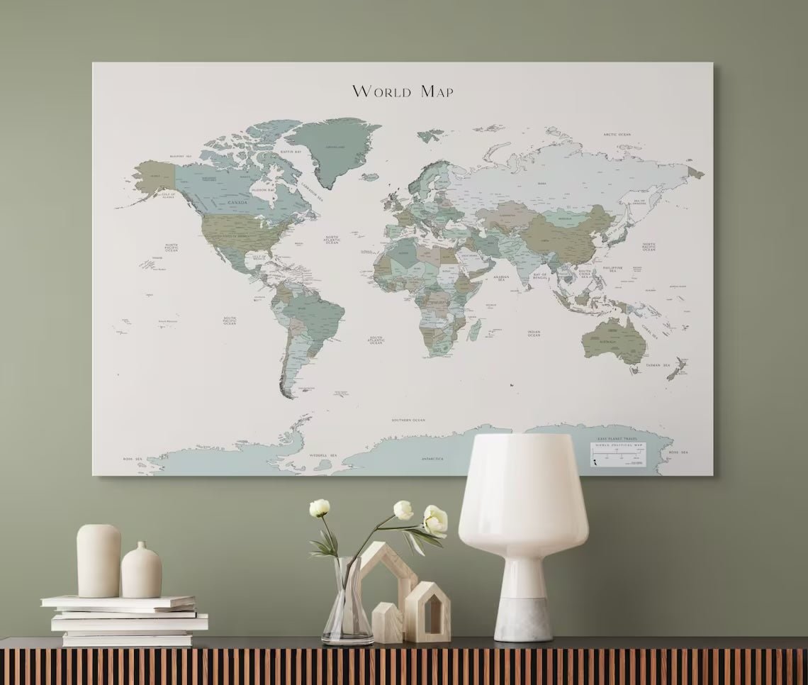 Denne verdenskort plakat er ideel som et stort statement på væggen eller som en del af en inspirerende billedvæg, hvor globalt udsyn og enkel elegance mødes.